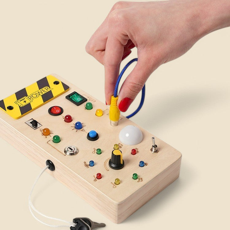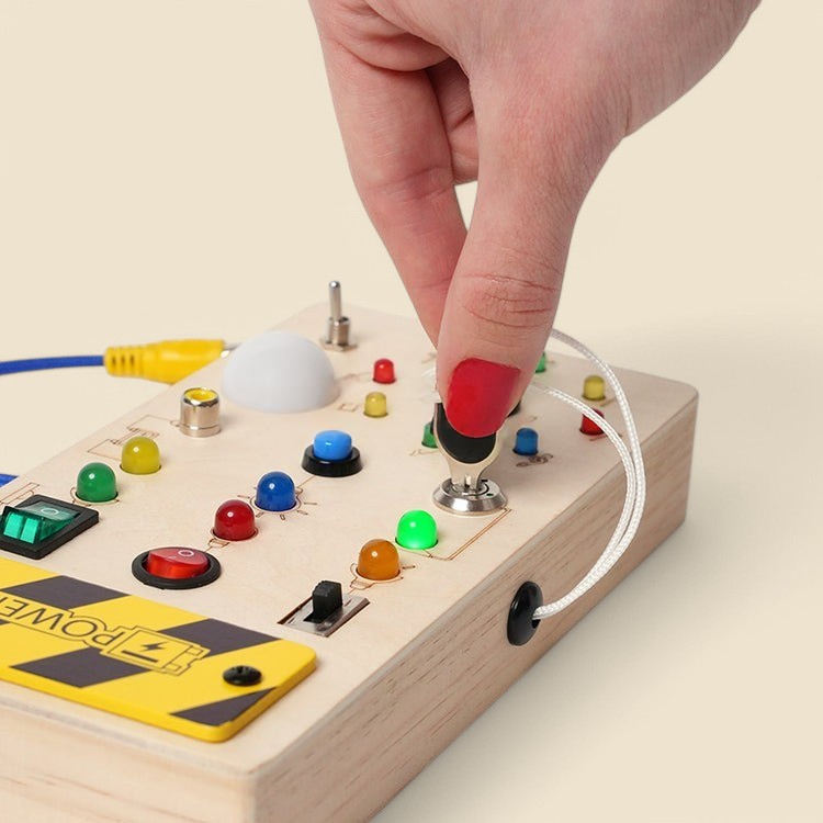 Combinez le plaisir de résoudre des problèmes de Brain Blocks avec les lumières et les interrupteurs irrésistibles de notre tableau à interrupteurs en bois à un prix imbattable !