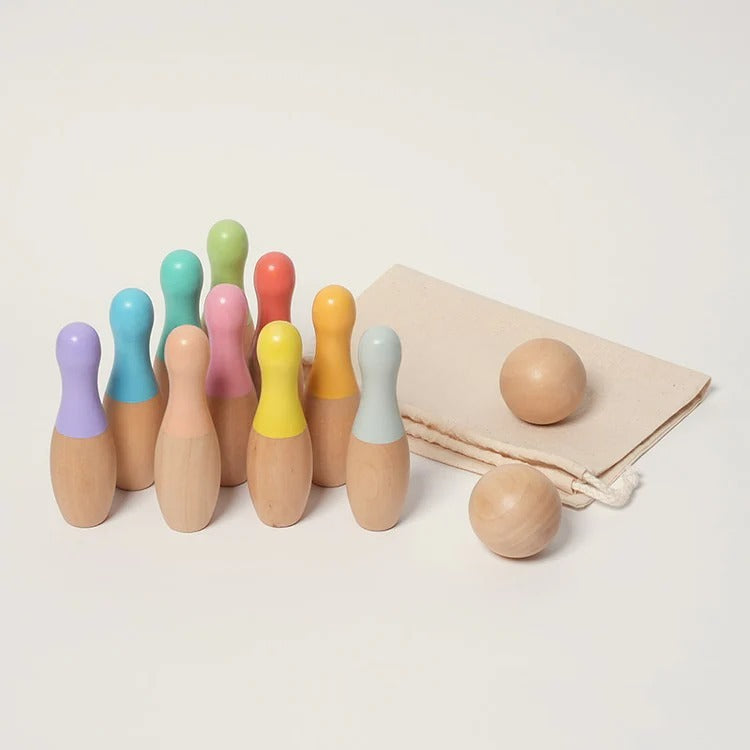 🌈 Comprend 10 quilles colorées et 2 boules en bois, idéales pour les petites mains.