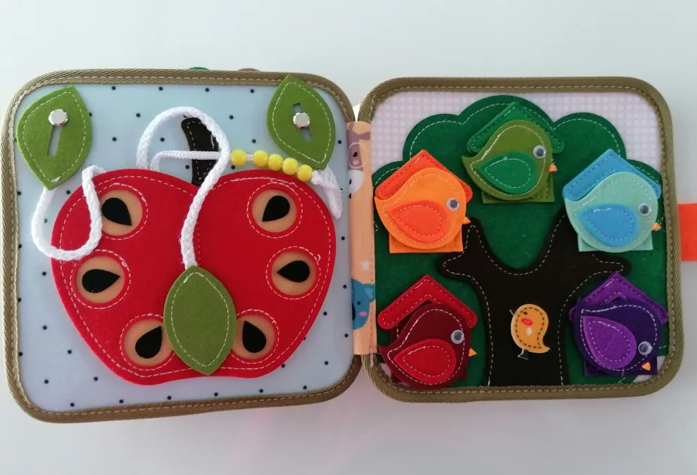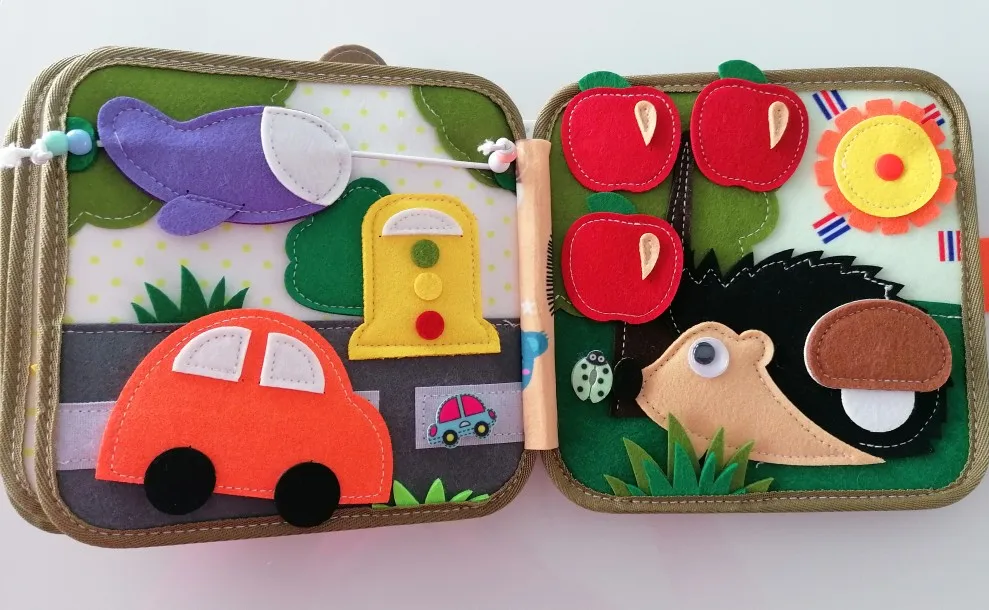 • Contient : (1) sac d'activités en feutrine avec huit pages interactives