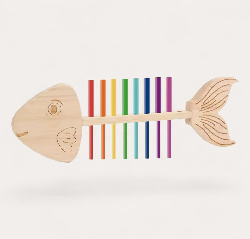 🎨 Stimule la coordination œil-main – Les enfants améliorent leur motricité fine en insérant les bâtonnets colorés dans le poisson.